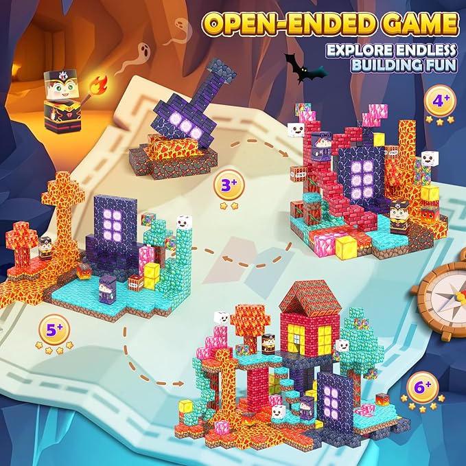 - Imagination Starts Here: Build fiery lava lands, enchanted forests, and secret portals with these colorful magnetic blocks—each cube unlocking a new world of creativity. Kids can construct, crash, and rebuild endlessly, boosting creativity, problem-solving, and fine motor skills. Designed with safe, durable magnetic building blocks sized perfectly for little hands, this set sparks focus, patience, and imagination. Perfect for curious creators ages 3 and up.