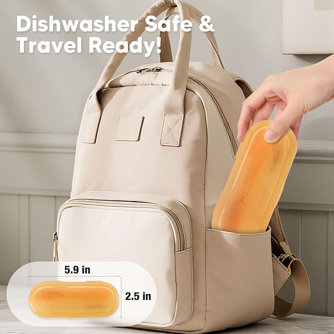 - Travel Utensils with Case & Safety Chain for On-the-Go Feeding This 2-pack of silicone baby spoons self feeding 6+ months comes with a sturdy travel case and a safety chain to keep utensils clean and within reach. Compact and lightweight, these baby eating essentials fit easily into diaper bags, making them the perfect baby utensils for family outings, daycare, or meals on the move.