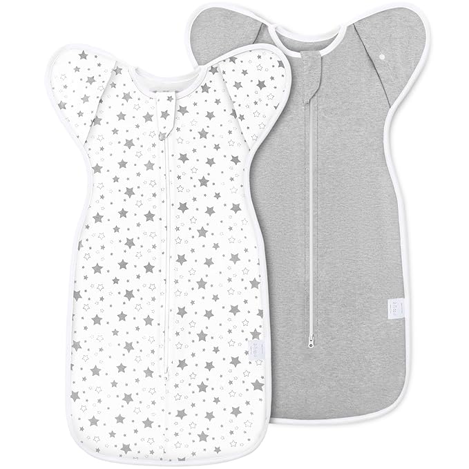 2-Pack Baby Transitional Swaddle Sleep Sack - Arms Up Transitional Swaddles with Removable Cuffs & 2-Way Zipper, Gray Stars Design, Breathable Cotton Sleep Sack (6-9 Month)
