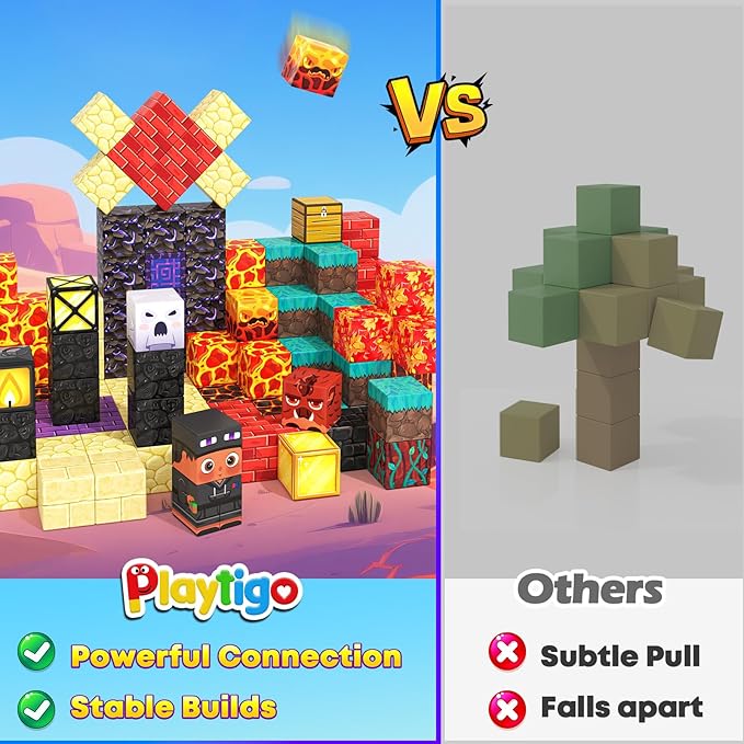 - Magnetic Building Blocks: Let's journey through a world of possibilities with Playtigo magnetic blocks set! Packed with 154 colorful tiles, this kit transforms every build into a storytelling adventure. Whether leaping from golden dunes to vine-covered canopies, each block opens the door to a mysterious new world—fueling imagination, creativity, and endless exploration.
