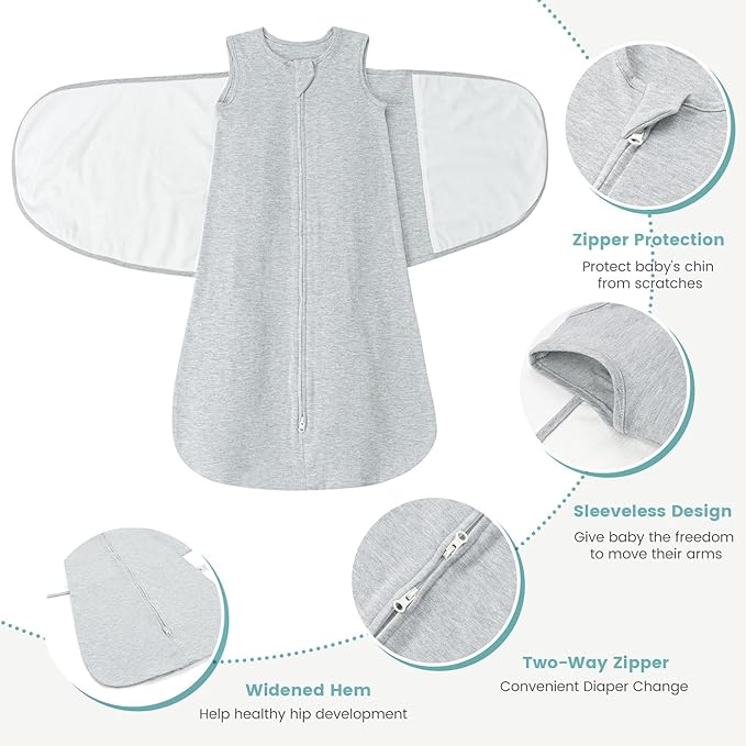 - 3-Position Arm Styles: Adapt to your baby's preference with 3 adjustable arm positions-arms in for a cozy, womb-like feel, arms out for more freedom of movement, and hands-to-face for self-soothing. Our sleep sack swaddle adapts to every growth stage