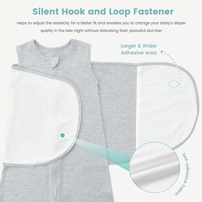 - Ultra-Soft & Noise-Free: The baby swaddle is made from 100% premium cotton with 1.0 tog, which is ideal for temperatures of 68-75°F (20-24°C). Quiet self-stick wrap secures snug fit without crinkling, ensuring peaceful all-night sleep