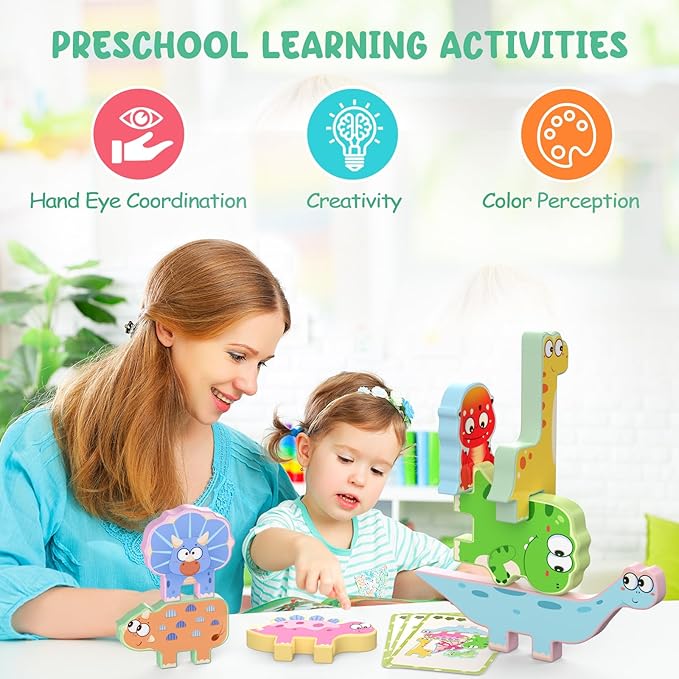 - đŚăDinosaur Toys for ToddlersăZeoddler Wooden Stacking Blocks are the PERFECT CHOICE for you and your toddlers as it is made from natural wood, printed with well designed. This montessori toys is suitable for toddlers and represents the perfect activity to learn through play!