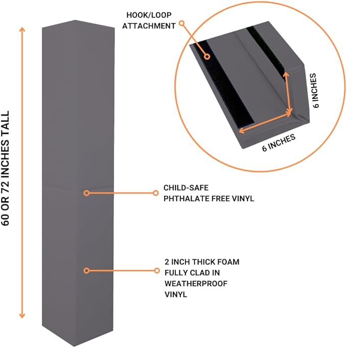 - SIMPLE INSTALLATION - Our removable pole pads are secured with a hook and loop strip. Easily moved and replaced for all around safety coverage, covers wall with 6" of padding on each side.