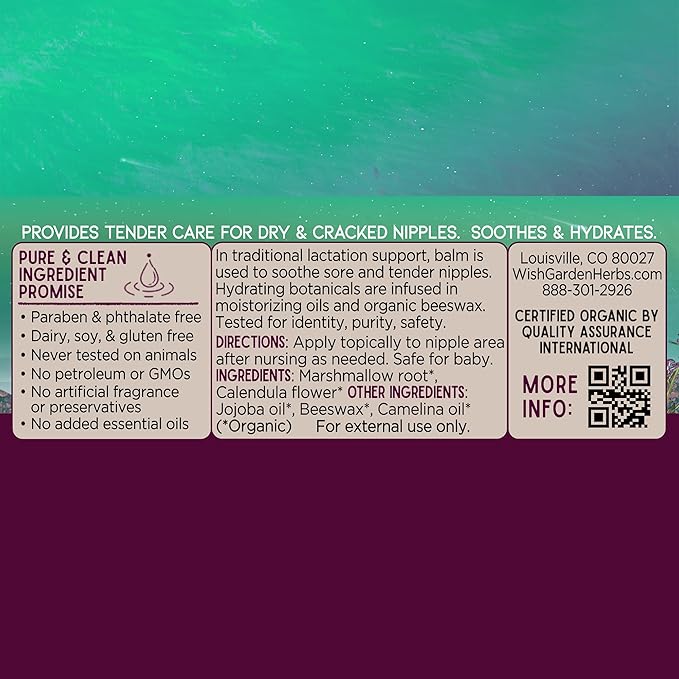 - COMMITMENT TO SUSTAINABILITY: New Mother Nursing Balm nipple balm for breastfeeding is made from a love of plants & the earth, so sustainability is very important to us. Each of our herb suppliers and farmers go through an extensive screening process & annual review & must meet our high standards for sustainability & quality. In 2023, WishGarden won the Supply Chain Integrity Award from Nutrition Business Journal, recognizing our commitment to sustainability & regenerative farming.