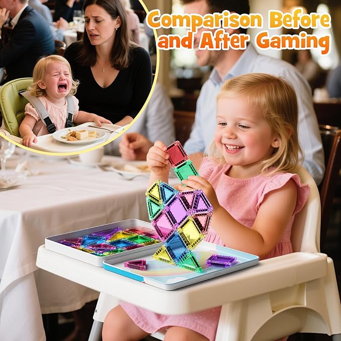 - Travel Magnet :The included convenient storage box keeps all 40 tiles neatly organized, eliminating the risk of losing pieces. It’s the perfect travel partner for playdates, vacations, or any adventure where creativity strikes.