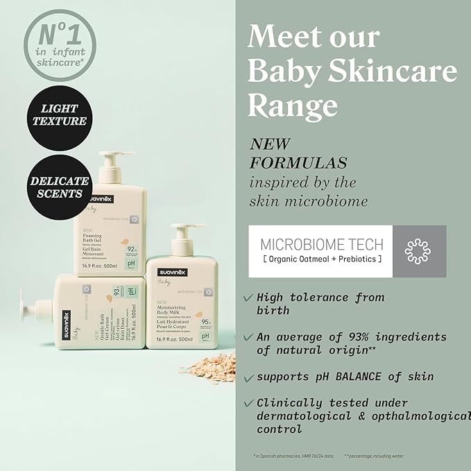 Suavinex, Moisturizing Body Milk Baby Moisturizer, Baby Lotion Suitable for Sensitive Skin and Newborns, Light Texture, Easy Absorption, 95% Ingredients of Natural Origin, 16.9 fl oz.