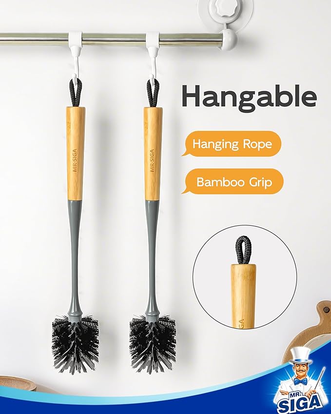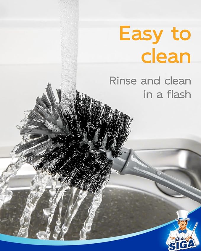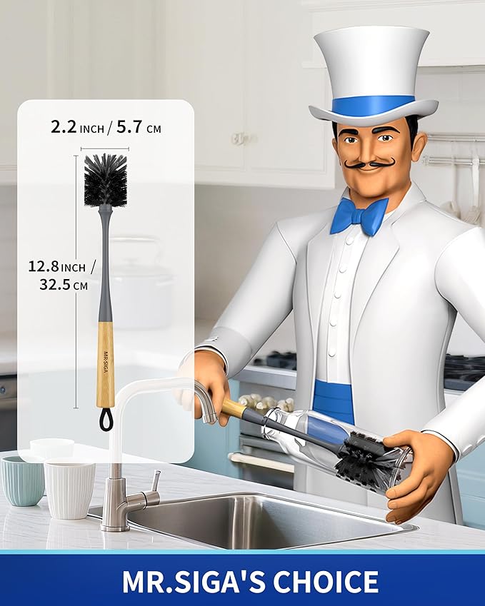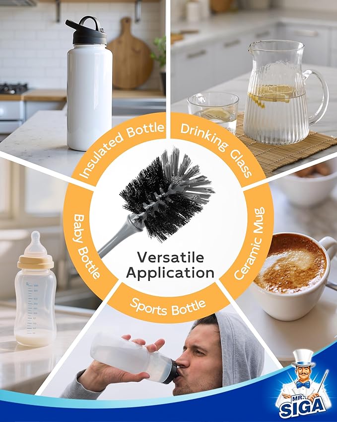 - Dual Function Bristles for Superior Cleaning: MR.SIGA bottle brush features two specialized bristle types for maximum cleaning efficiency. The firm gray bristles at the top power through tough stains and grime in hard to reach areas, while the gentle black bristles clean the inner walls effectively