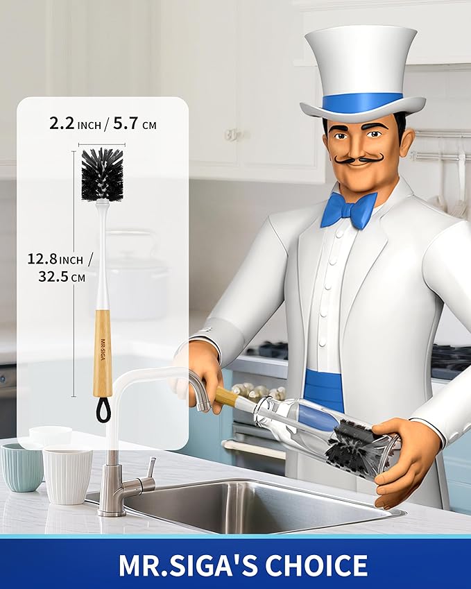 - Dual Function Bristles for Superior Cleaning: MR.SIGA bottle brush features two specialized bristle types for maximum cleaning efficiency. The firm gray bristles at the top power through tough stains and grime in hard to reach areas, while the gentle black bristles clean the inner walls effectively