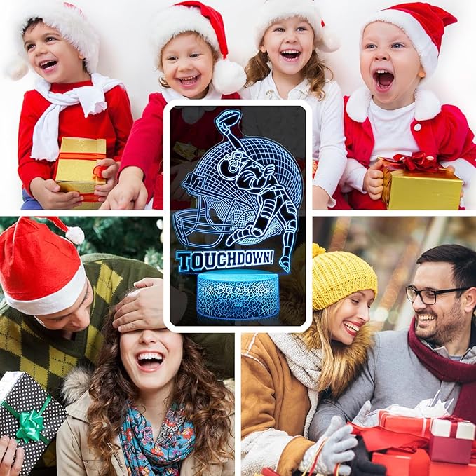 Football Lamp, 16 Colors Touchdown Night Light - Remote Control, Timer Tpye-C Dimmable, LED 3D Light Illusion, American Football Room Decor for Boys
