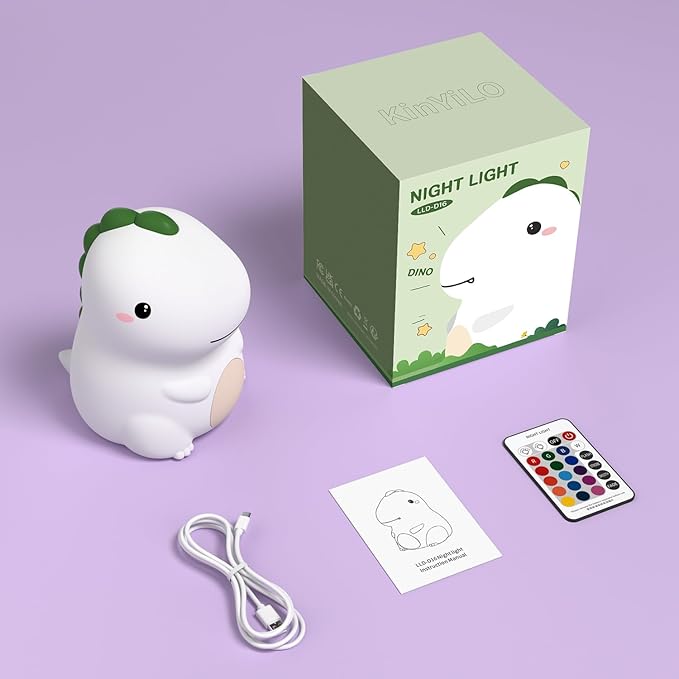 - [ Dinosaur Night Light for Kids] :This cute and cuddly dinosaur night light will soon become your little one’s favorite nighttime friend. When darkness feels scary, its gentle glow brings comfort and peace, helping kids feel safe and drift off to sleep on their own. Easing nighttime fears and encouraging independent sleep.