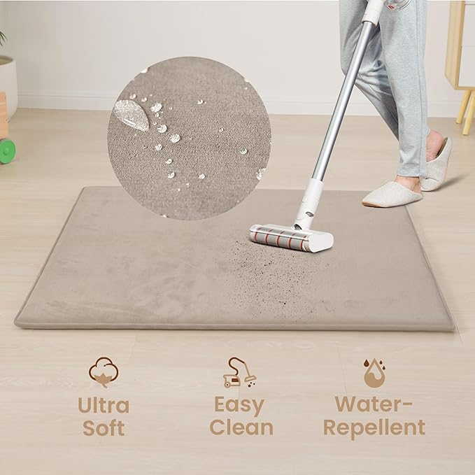 - Water-Resistant & Easy-Clean Coral Velvet: The soft, water-repellent coral velvet fabric repels spills and messes, making cleanup effortless—ideal for infants and toddlers during feeding, play, or tummy time mat activities.