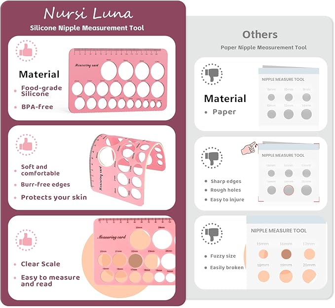 - Getting The Right Flange Size: Nipple size can change during different breastfeeding stages, requiring adjustments for optimal comfort. Our nipple ruler based on IBCLC recommendations, provides precise sizing to ensure a perfect fit and efficient pumping