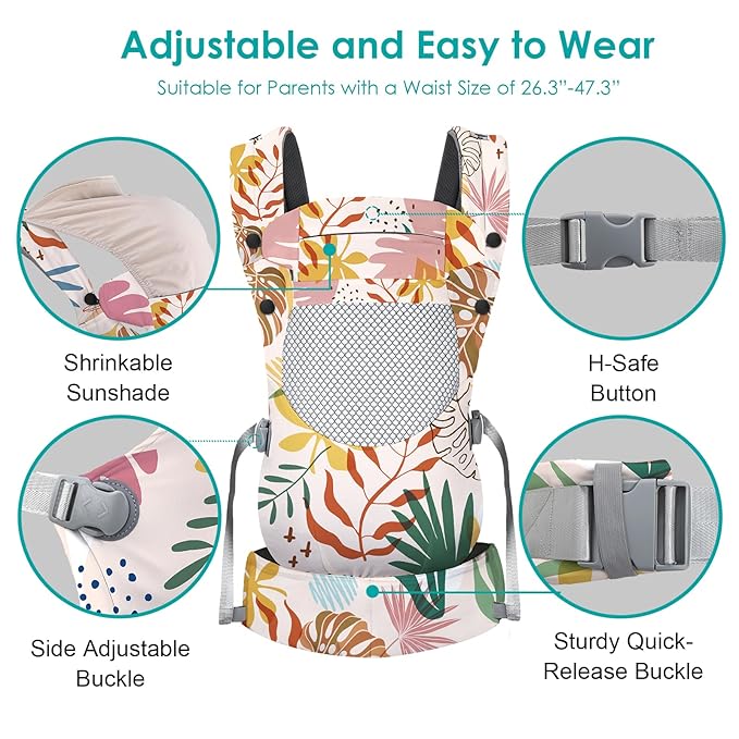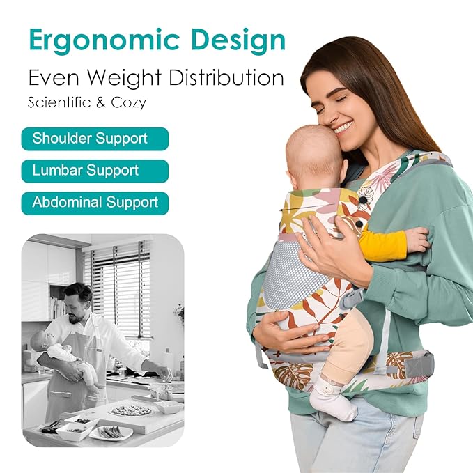 - Ergonomics: The baby carrier features an adjustable ergonomic seat, wider and thicker shoulder straps and waistbelt, which evenly distributes the weight to the wearers waist, tummy and shoulders for a more comfortable fit