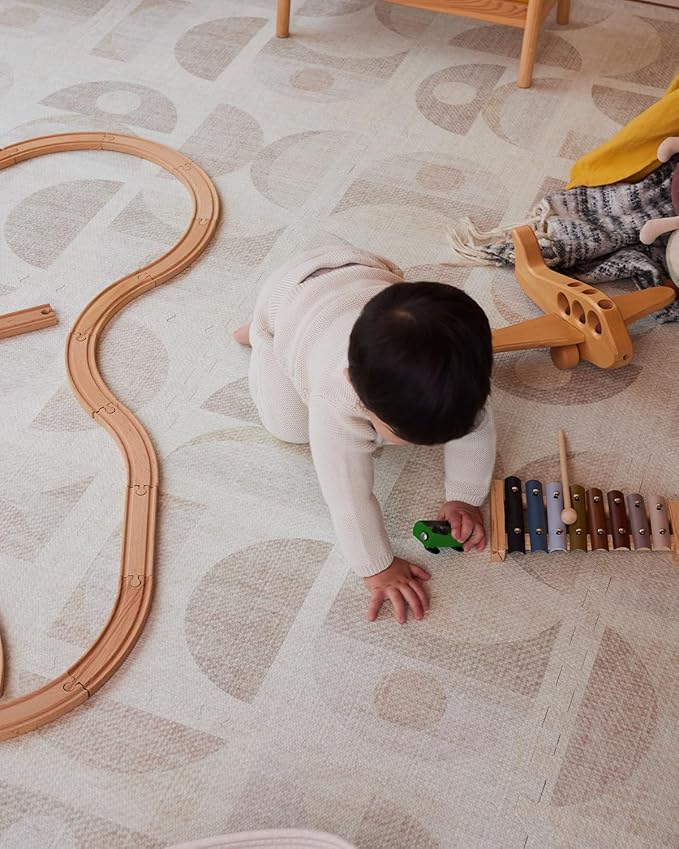 - NEUTRAL & VERSATILE - Designed to look just like a rug. Unlike bright, colorful mats, our play mats for babies feature neutral, modern designs that blend beautifully with your home décor, making it the perfect mat for babies to play on the floor in living rooms, nurseries, or playrooms.