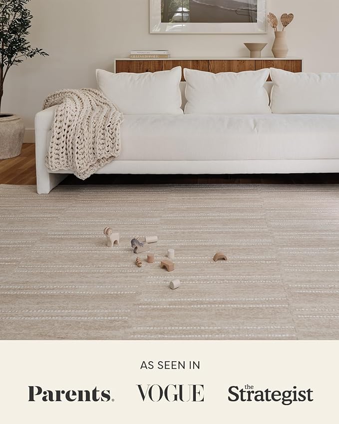 - NEUTRAL & VERSATILE - Designed to look just like a rug. Unlike bright, colorful mats, our play mats for babies feature neutral, modern designs that blend beautifully with your home décor, making it the perfect mat for babies to play on the floor in living rooms, nurseries, or playrooms.