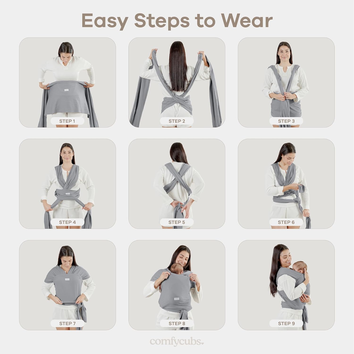 Comfy Cubs Baby Wrap Carrier - Soft & Secure Fit Cotton Blend Baby Carrier Newborn to Toddler - Hands-Free & Lightweight Infant Wrap - Adjustable, One Size Fits All Toddler Sling - Slate Grey