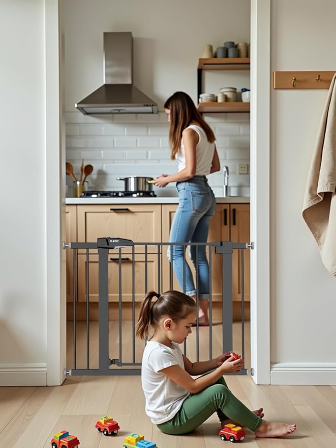 - Keep Your Little Ones and pets Safe: The baby gate for stairs is made of all-metal structure, it can withstand impacts from pets. Don't need to worry about baby gates with door being pushed down and hurting your children or dogs. The pet gate is chew-proof, lead-free and non-toxic, providing a secure barrier wherever you need it. Ideal for a family with children and pets