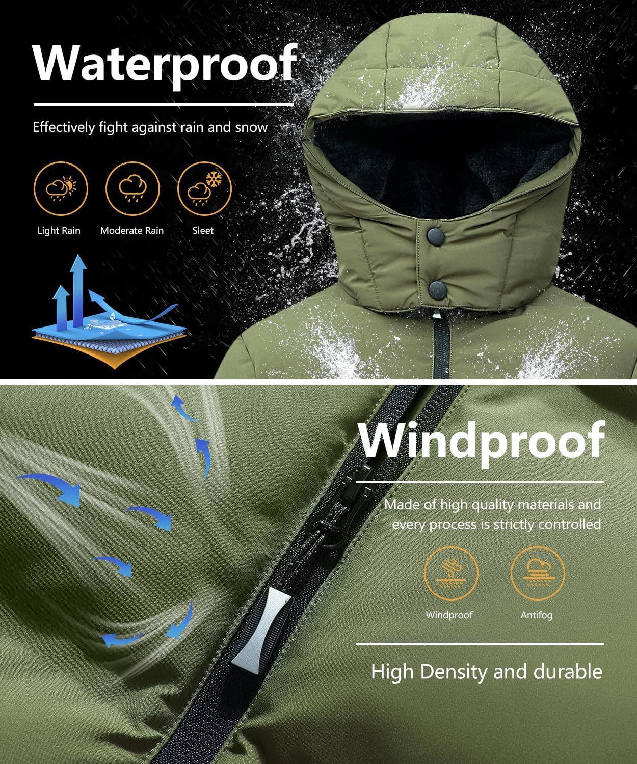 - Waterproof Fabric: This boys' outerwear coat is made of durable waterproof fabric with waterproof level up to 3000mm to keep kids dry