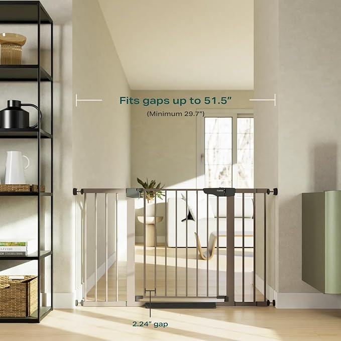 - WIDE FIT & EASY ACCESS – Fits openings up to 51.5 inches wide with an included anti-trip pedal. The main door offers a 22.3" walk-through width, making it convenient for strollers or daily household traffic.