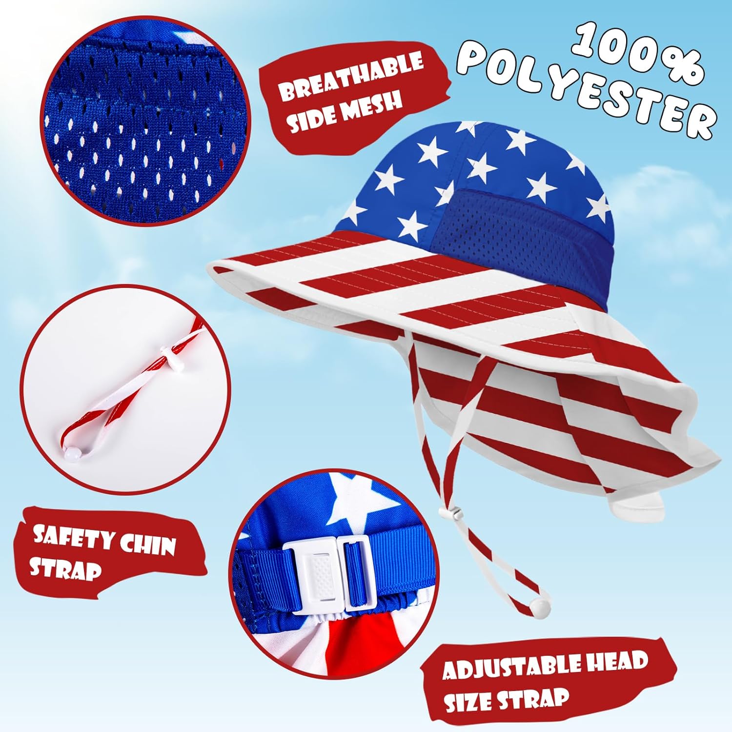 - SAFETY RELEASE CHIN STRAP: The toddler bucket hat has a chin strap to keep it stay on baby head when they are playing or in wind. Great for little girls and boys playing at the play ground. Definitely an idea gift to your child, niece, granddaughter or grandson on birthday, summer holiday or festival