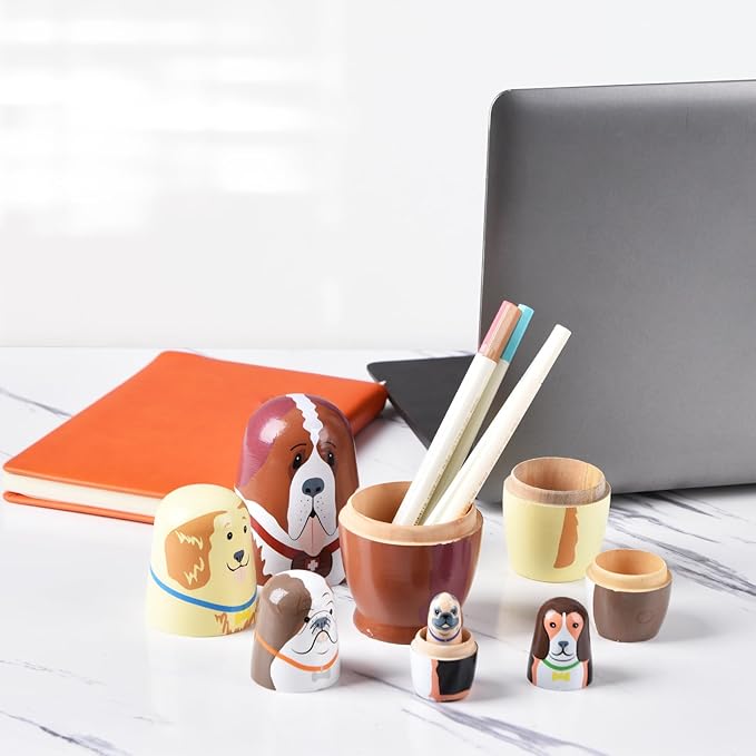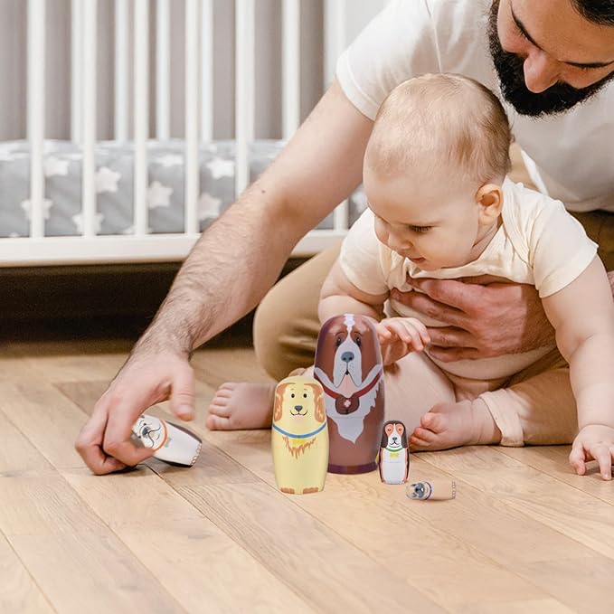 Nesting Dolls, 5Pcs 6" Tall Russian Nesting Dolls, Handmade Matryoshka for Kids, Wooden Stacking Toys for Christmas Home Wedding Party Decorations (Dog)