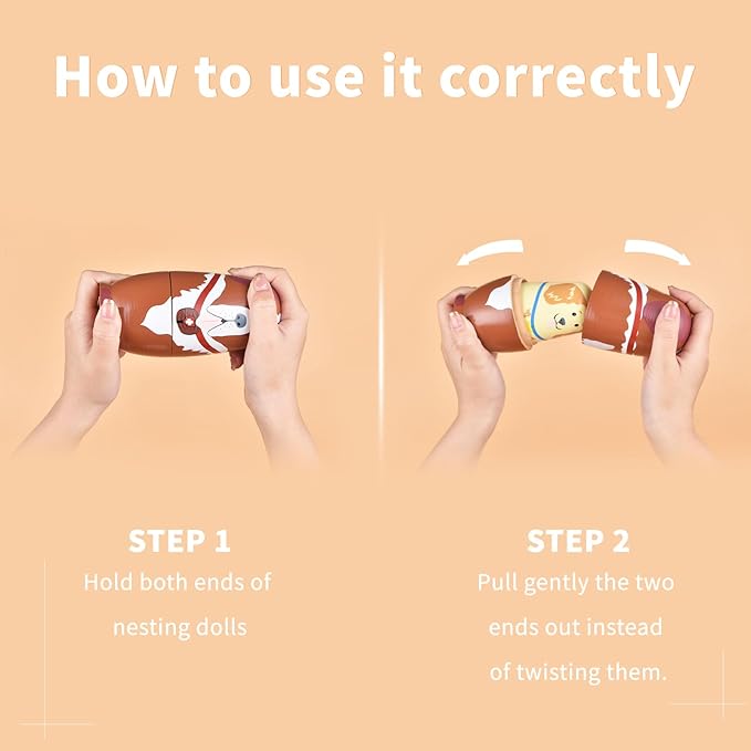 - Notes: Remember to close the nesting dolls after finishing playing, because they might shrink and will not match each other
