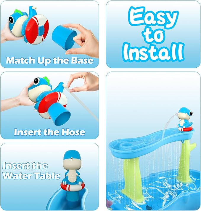 - 【Effortless Installation】: This mini dinosaur water table pump toys requires no drilling, making setup easy. Its lightweight, detachable design is perfect for beach trips, backyard fun, and outdoor play.