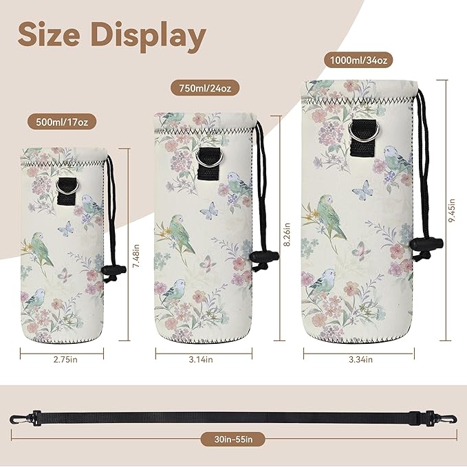 RICHEN Neoprene Water Bottle Carrier Bag with Adjustable Shoulder Strap,Insulated Water Bottle Cover for Stainless Steel/Glass/Plastic Bottles
