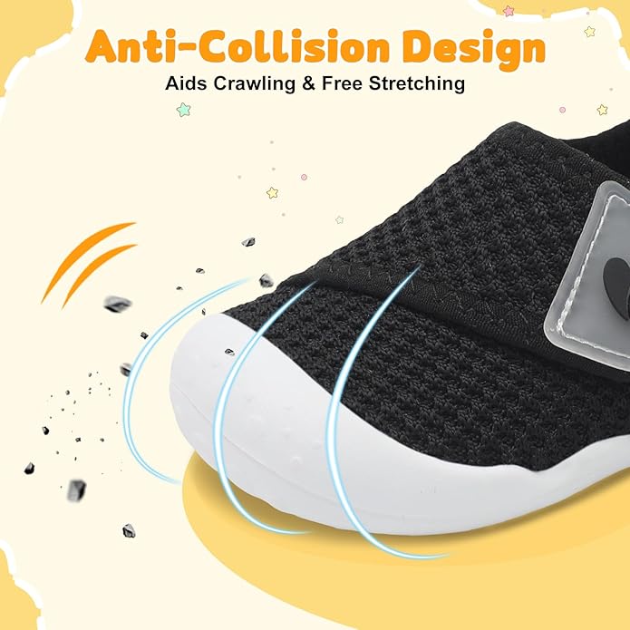 FEETCITY Baby First Walking Shoes Wide Baby Shoes Infant Sneakers Newborn Crib Shoe Barefoot Lightweight Slip On Shoe