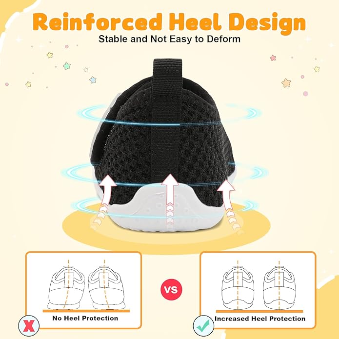 - Reinforced Heel Design: Stabilizes the soft tissue of baby's heel to grow straight and without deformation. Learning to walk is safer, no broken feet