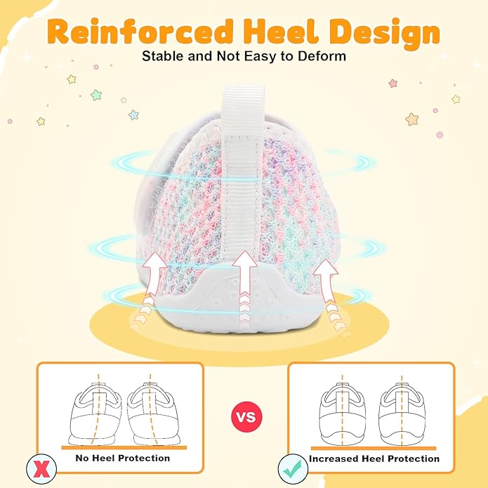 • Reinforced Heel Design: Stabilizes the soft tissue of baby's heel to grow straight and without deformation. Learning to walk is safer, no broken feet