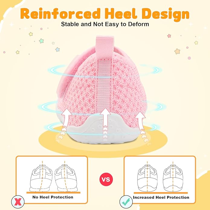 • Reinforced Heel Design: Stabilizes the soft tissue of baby's heel to grow straight and without deformation. Learning to walk is safer, no broken feet