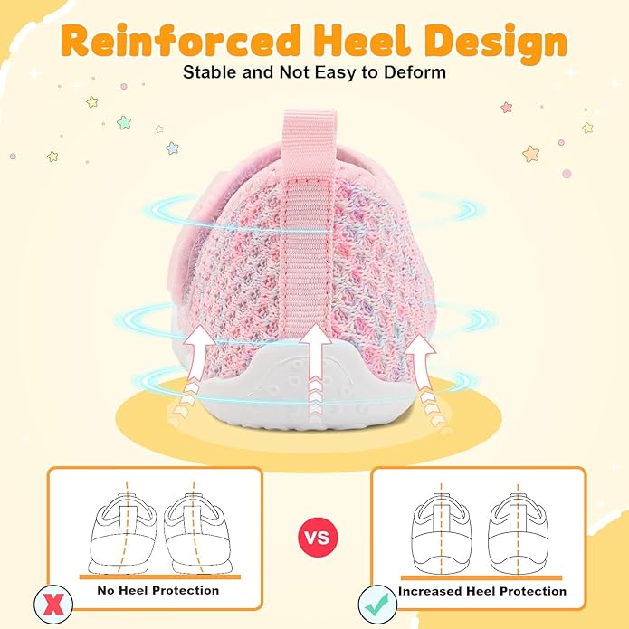 • Reinforced Heel Design: Stabilizes the soft tissue of baby's heel to grow straight and without deformation. Learning to walk is safer, no broken feet