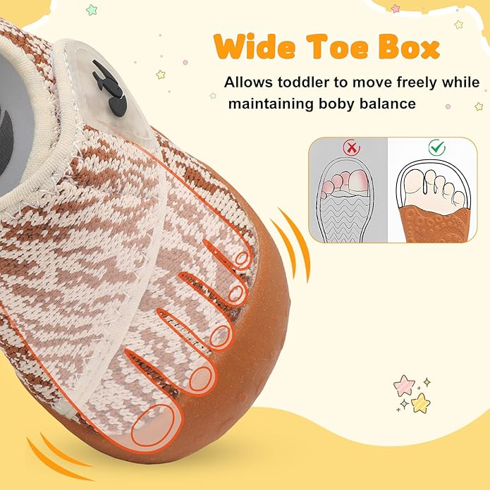 • Wide Round Toe: The unique design of the toe can make the baby's feet free movement, body balance is not afraid of falling, anti-collision to help crawling