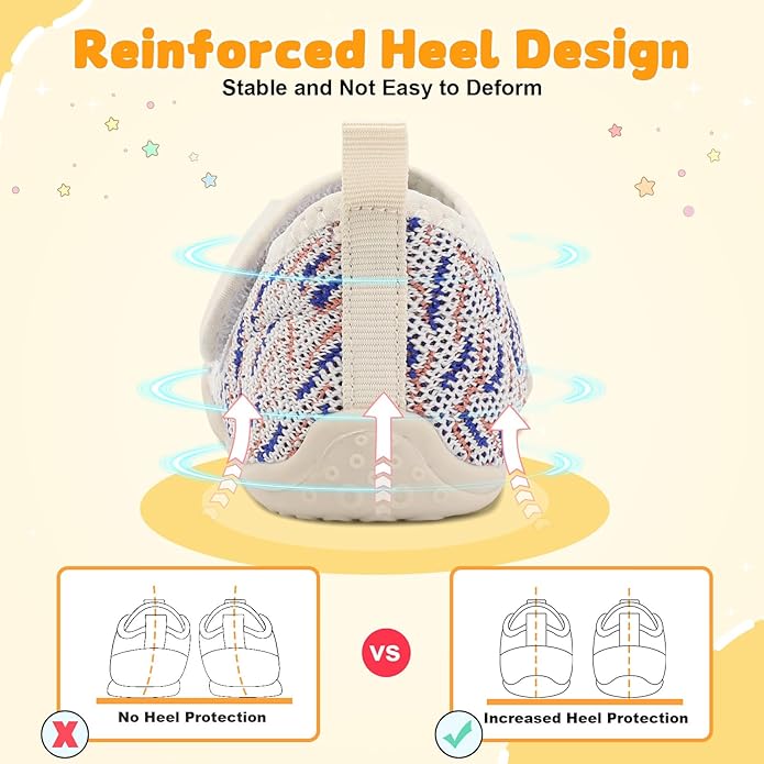 • Reinforced Heel Design: Stabilizes the soft tissue of baby's heel to grow straight and without deformation. Learning to walk is safer, no broken feet