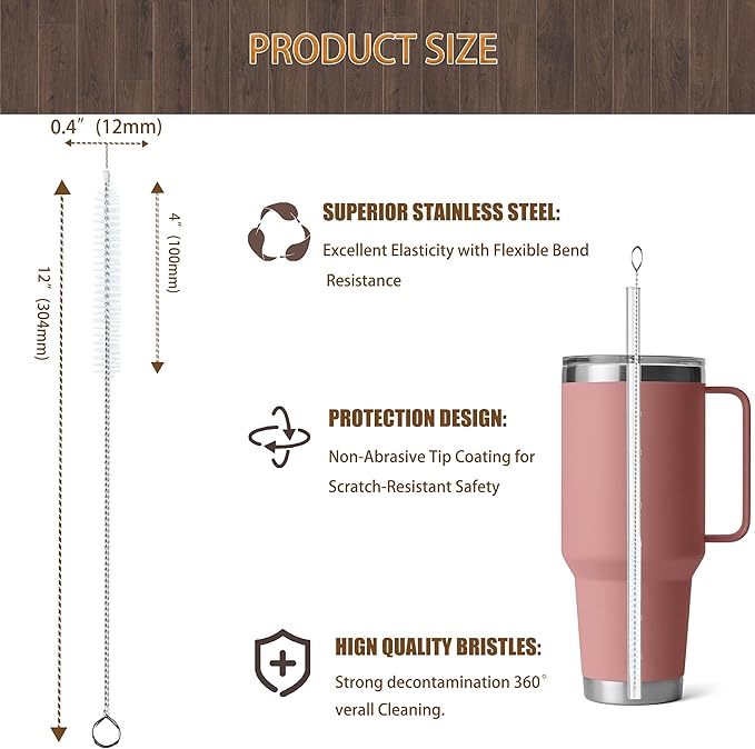 - 【Thermostable Curved Cleaning Solution】 Engineered with a semi-flexible core, the Stanley Straw Cleaner Brush bends to hug tumbler curves but snaps back to shape—even after scrubbing metal straw cleaner-grade steel. The rustproof 304-grade handle and heat-resistant bristles (withstands 60°C/140°F) outlast warping green pipe cleaners, making it ideal for sanitizing straw cleaner brush set kits or daily deep-cleaning.