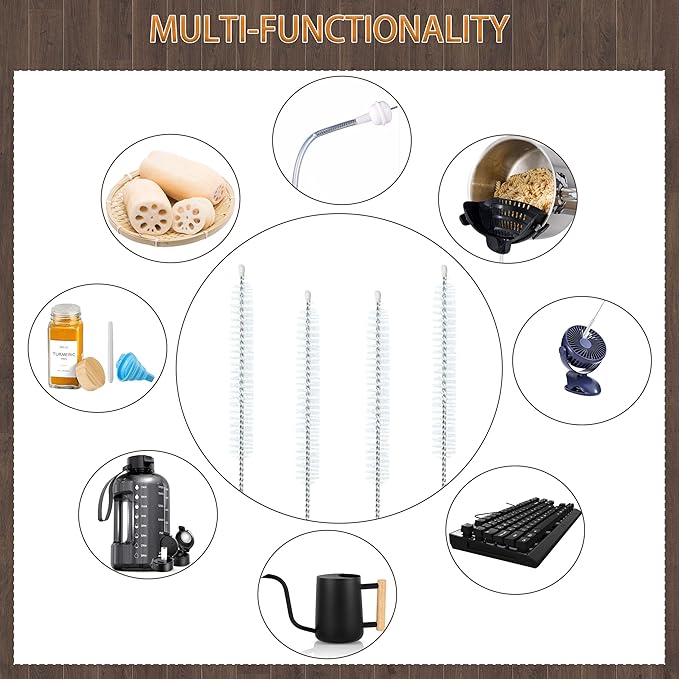 - 【8-Pack Heavy-Duty Tube Cleaning System】 Built for heavy use, this straw brush set includes a Straw Cleaner Brush Extra Long with 12 Inch (304mm) reach, paired with 100mm nylon bristles and a 12mm-wide design. Replace flimsy disposable bottle brushes and bulk pipe cleaners with these eco-friendly tools that tackle stainless steel straws, protein shaker balls, and keyboard crevices effortlessly. Outperforming standard brushes and bulky electric cleaners, the straw brushes for cleaning straws flex without bending, conquering narrow spaces where traditional tools fail.