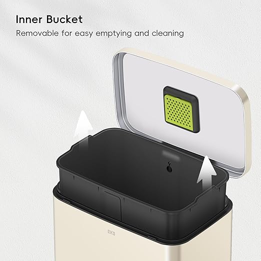 - Elevated Inner Bucket with Handles: The Madison stainless trash can features a raised inner bucket with convenient handles, ensuring swift and hassle-free bag replacement.