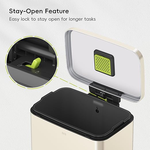 - Stay Open and Do Your Thing - This kitchen garbage can boasts an easy-to-use lid lock, ensuring it stays open as long as needed.