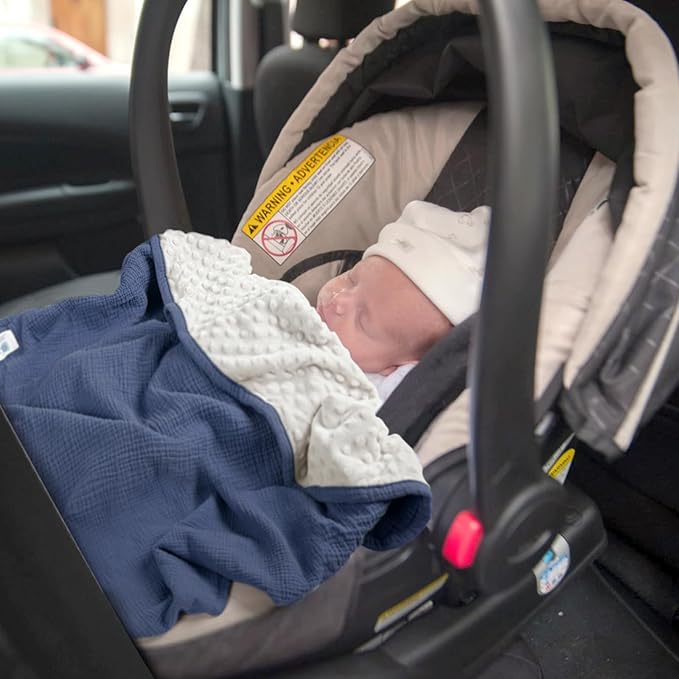 - Lightweight Dual-Fabric Design: Muslin & Minky Dot - Features a breathable muslin front and a warm minky fleece back. The lightweight, double-layer construction balances airflow and thermal retention, ideal for naps or daily cuddling.