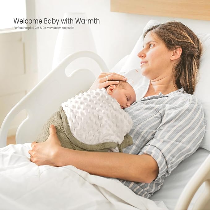 lulumoon Baby Blanket for Newborn Receiving: Minky Dot & Muslin Lightweight - Thermal Blanket Gift for Baby Shower & Hospital Welcoming 30"x40"(Olive)