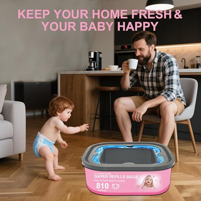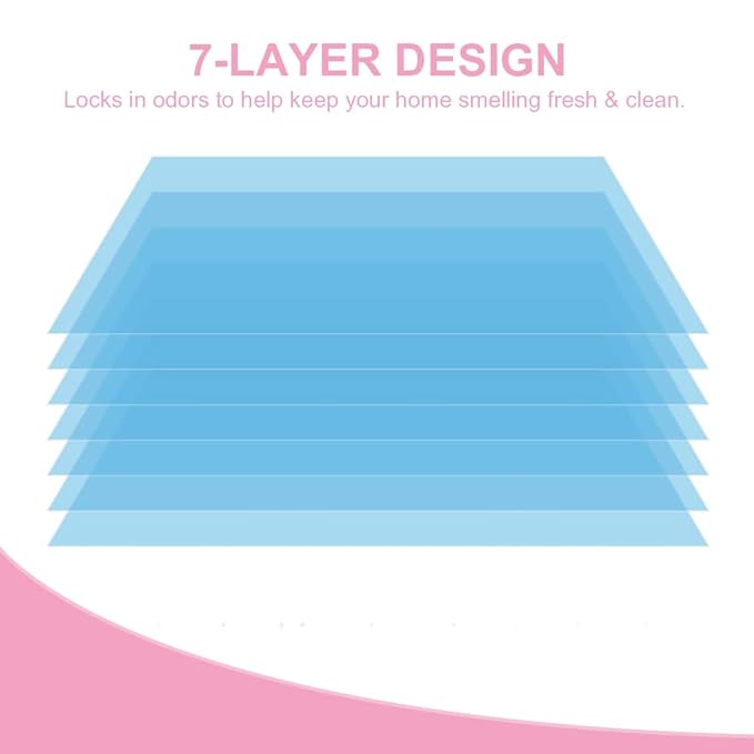 - New Design: This jumbo square diaper refill uses a special PE layer with a 7-layer design to lock odor effectively that can easily hold newborn diapers a true help to contain odors, keeping your home fresh and odor-free.