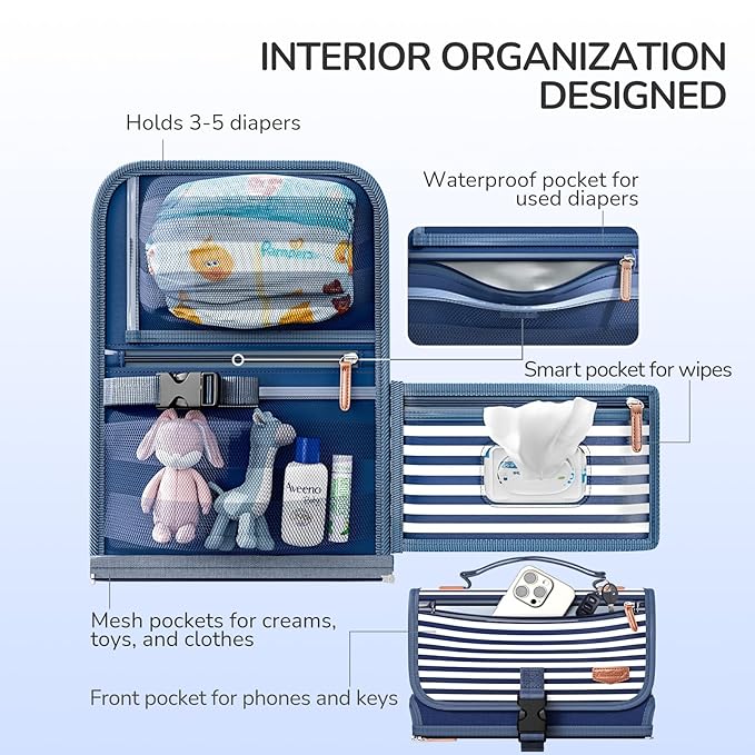 Portable Diaper Changing Pad for Baby, Detachable Travel Changing Pad with Baby Wipes Pocket, Gifts for Baby Shower, Newborn Girls and Boys (Navy)