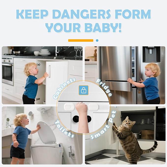 - SAFE & RELIABLE MATERIA – Our Baby Safety Locks made of durable ABS material, high temperature and corrosion resistance, suitable for various home environments, for Kitchen, Living Room, Bedroom, Laundry & Bathroom, etc. and appliances.