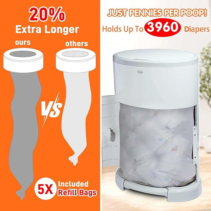 - Budget-Friendly with Increased Capacity: Each package contains 10 diaper pail refills with 20% Extended Length and holds up to 3960 newborn diapers. Decrease the frequency of refills and replacements, lasting you months of hassle-free diaper disposal.