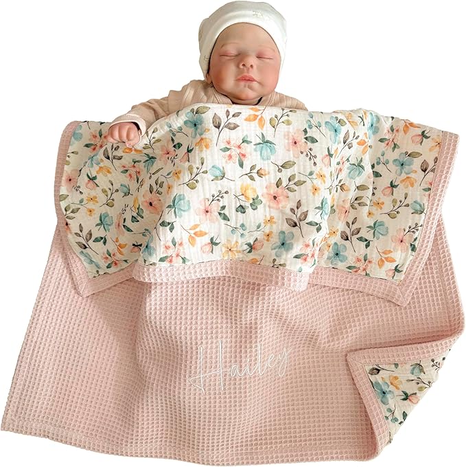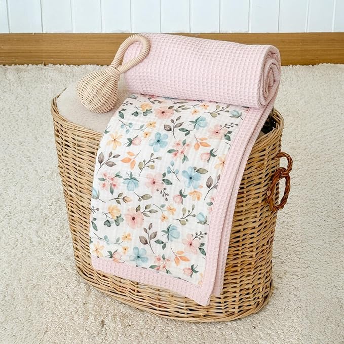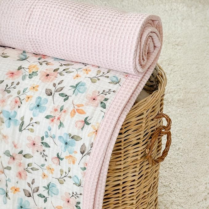 - ULTRA-SOFT ORGANIC COMFORT - Wrap your baby in the gentle embrace of our waffle baby blanket, crafted from 100% organic cotton, this floral print blanket offers a breathable and soothing touch against delicate newborn skin, ensuring a cozy and peaceful rest.