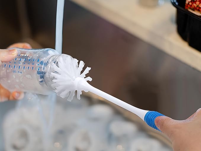 Bottle Brush Cleaner, Long Handle Bottle Brush with Dual Bristles for Water Bottles, Glassware, Mugs, Sports & Baby Bottles Cleaning, 2 Handles with 4 Brush Heads