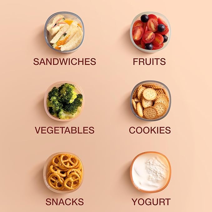 - Everyday Versatility for Growing Families - From purees to snacks, these containers adapt as your child grows. Great for daycare, travel, and home use. Airtight lids store liquids, while snack lids are perfect for solids.