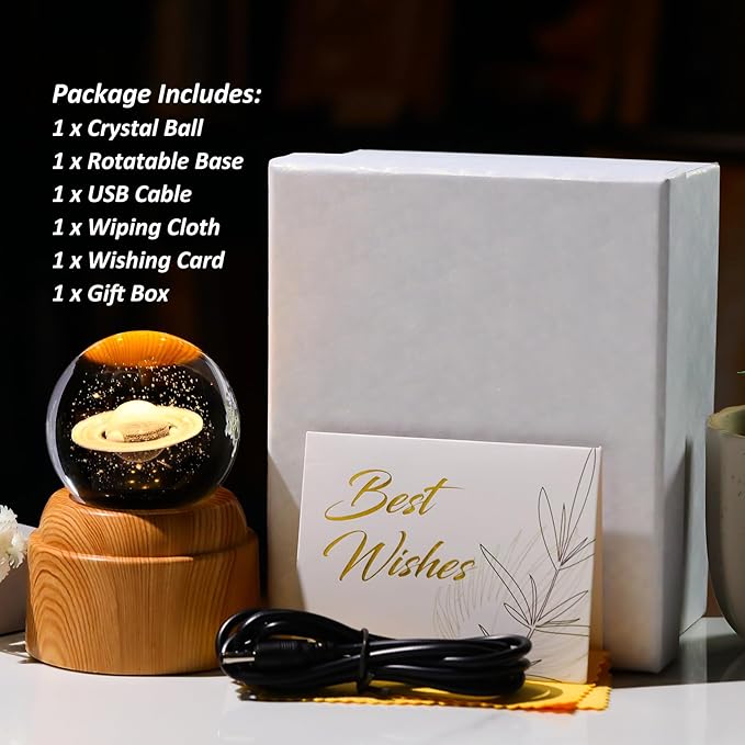 - Perfect Astronomy Gifts: 3D saturn crystal ball paperweight is great decorations for room, nightstand, courtyards, dinner table, parties, cafe, etc. Glass ball exquisite gift for Classmate of Birthday Holiday Christmas Day New Year. Crystal sphere can be used Father's day, Mother's day, Thanksgiving, Christmas, Valentine's, Teacher's day. Be it your mom, wife, sister or girlfriend, our crystal ball figurine will make them surprise for sure